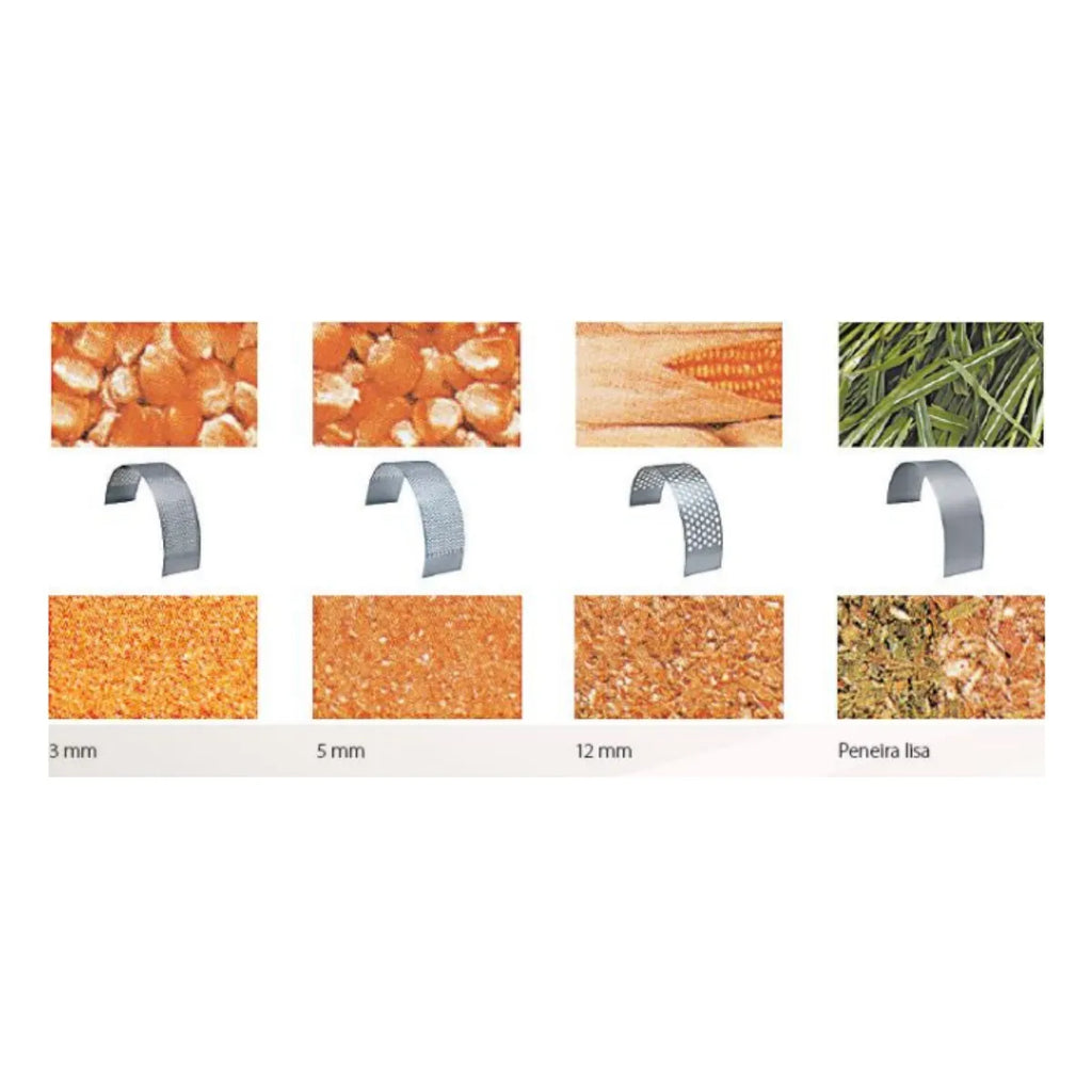 Peneira lisa: 700/1.400 kg/h (Ração verde)
